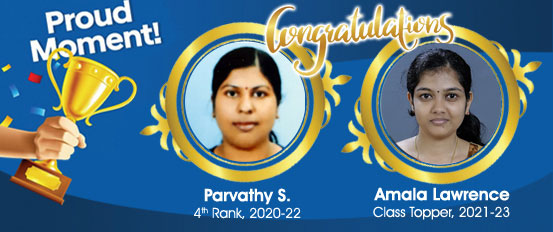 humanity devoid of profit motive.The College offers two years D.Pharm programme approved by the Pharmacy Council of India and affiliated to the Directorate of Medical Education, Govt. of Kerala. The institute enjoys great academic excellence. Our Vision Inspired by Jesus Christ the Divine Healer, Medical Sisters of St. Joseph (MSJ) is deeply committed to mould quality professionals with character and competence to touch the humanity with a compassionate heart and bring about wholeness. Our Mission As catholic health care providers deep rooted in gospel values, MSJ Educational mission aims at striving to continue the healing mission of Jesus Christ through creating commited, compassionate, skillful and integrated professionals who are responsible to build up a healthy family, society and nation.